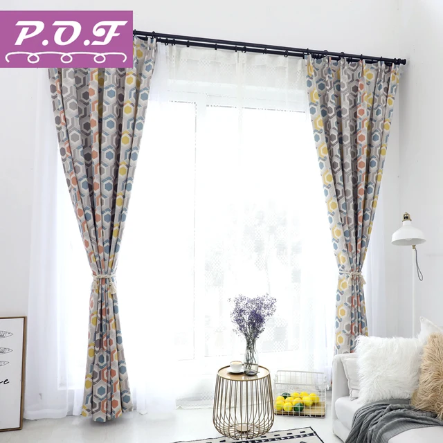 Cheap P.O.F Moden fashion Curtain for living room for bedroom Printed window treatment drapes for bedroom colorful pattern